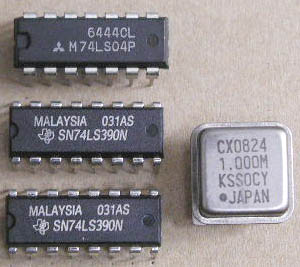 分周用基板は、机の中にありました。 元々は、時計用の分周基板です。 見覚えのある人もいるかも?