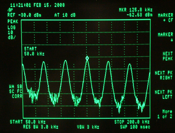 200MHz位ではマーカ発振器としては充分すぎるくらいの出力があります。