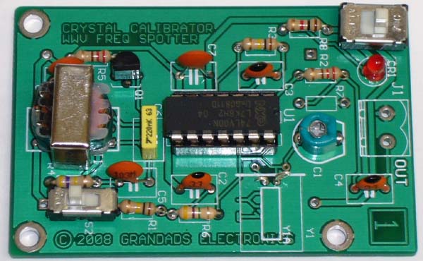 オリジナルは、中央・下の白く囲まれた部分にシリンダー型の水晶発振子を半田付けします。