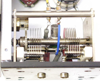 バリコンには目盛版が直接取り付けられていますが、その横のツマミを廻しても同調可能です。