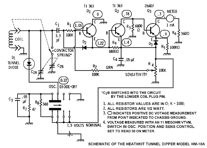 トランジスタ、FETの半導体の他、変わり種としてトンネル・ダイオードを唯一使用しているHEATHKIT HM-10A もあります。