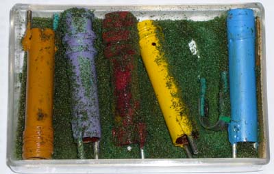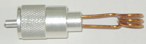 M型コネクター / オスにボールペンなどのプラスチックやアクリル棒を差し込んでボビンの代用にします。