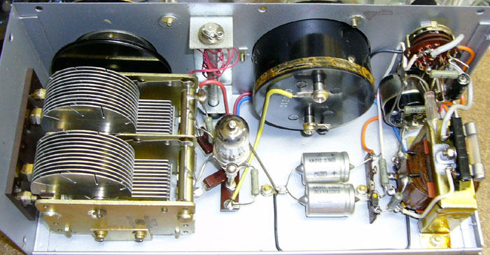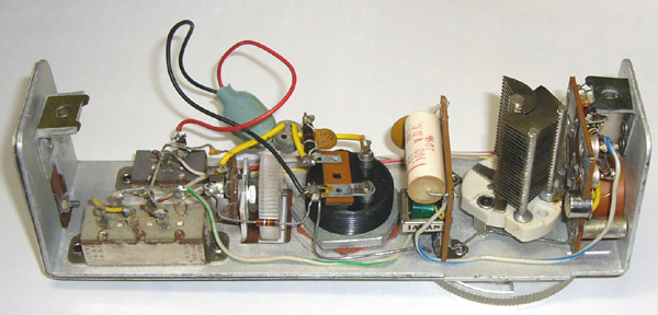 内部の様子 真空管は5814WA( 12AU7 ) 2連バリコンの片側は、未接続です。