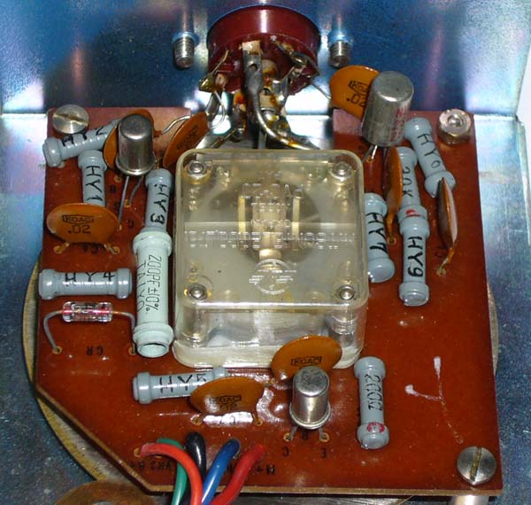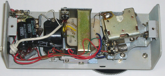 Tech TE-15の内部 メーター上部のトランジスタの足は長いまま。