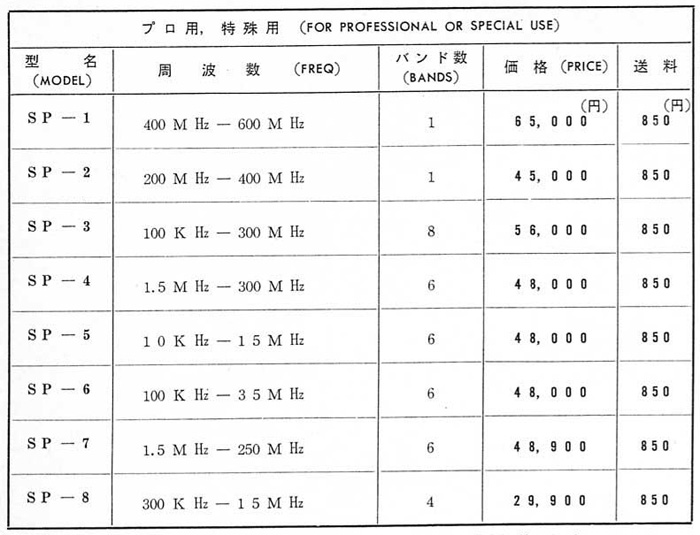 三田無線研究所製では、一番低い周波数域の製品です。 当時のカタログ資料より