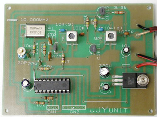基板上の10MHzの替わりに周波数標準器から10MHzを接続すれば、極めて安定な室内JJY送信機が出来上がります。