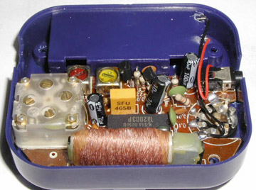 内部の様子 フィリップス製のAM/FMラジオICが使われていた。