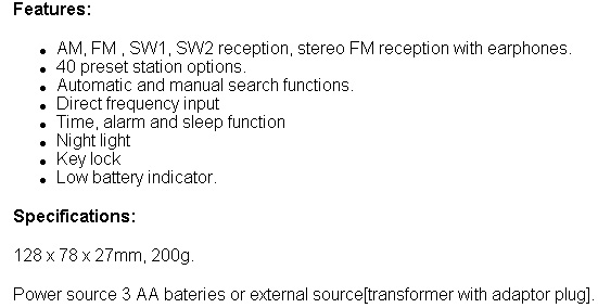 AM/FM各5メモリーが出来、使いやすい機種です。 右横にキー・ロック用スイッチがあるので、不意に電源が入ったりしません。