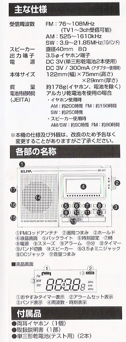 AM / FM / TV音声ラジオ 2006年9月に\8,295で購入。
