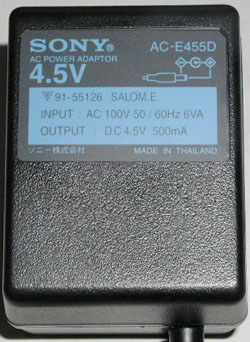そこでソニー製4.5V0.5A ACアダプターで代用しています。