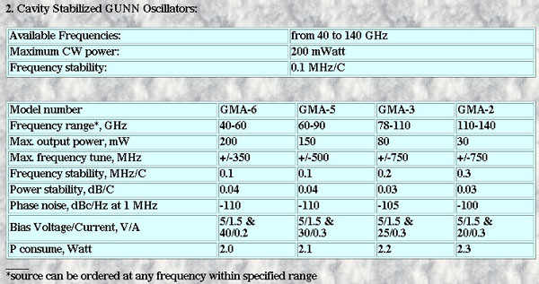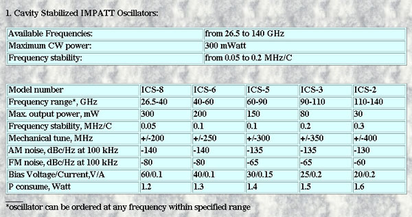 準ミリ波・ミリ波のガン発振器・インパット発振器の特注も可能です。 150GHz程度まで可能です。