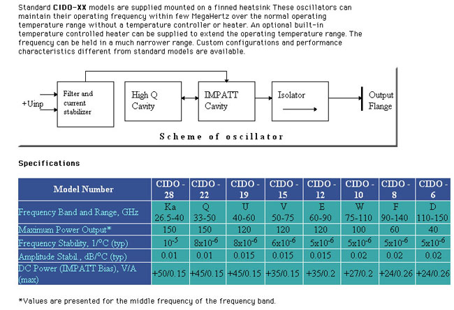 10GHzからミリ波の発振器まで扱っています。