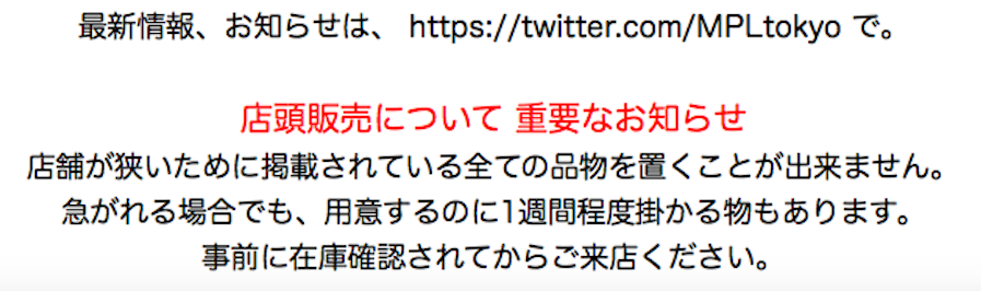 秋葉原店のご案内 最新情報は、https://twitter.com/MPLtokyo で!