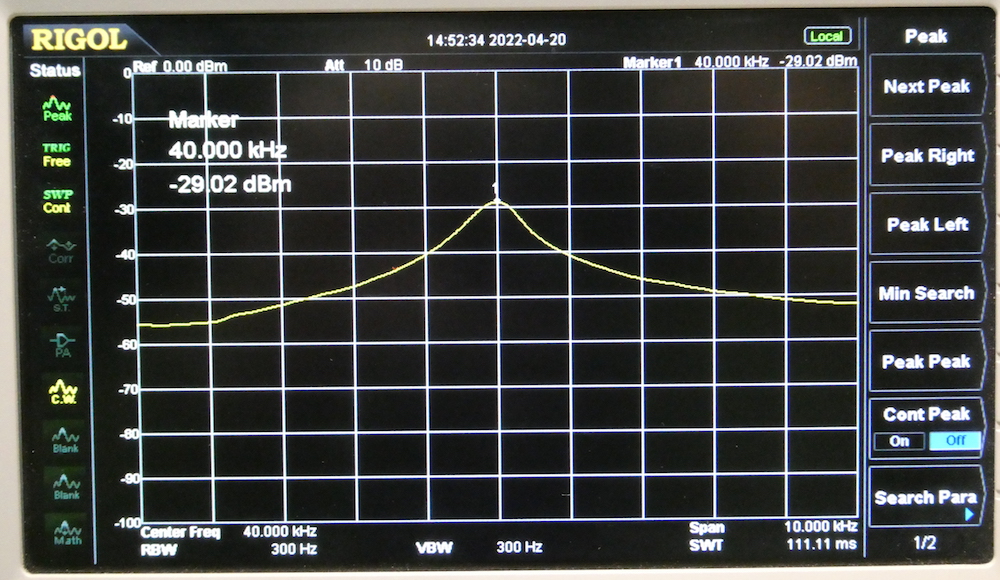 40kHzでも使用でき、ゲインは約20dBあります。 嵩張らなくて便利です。
