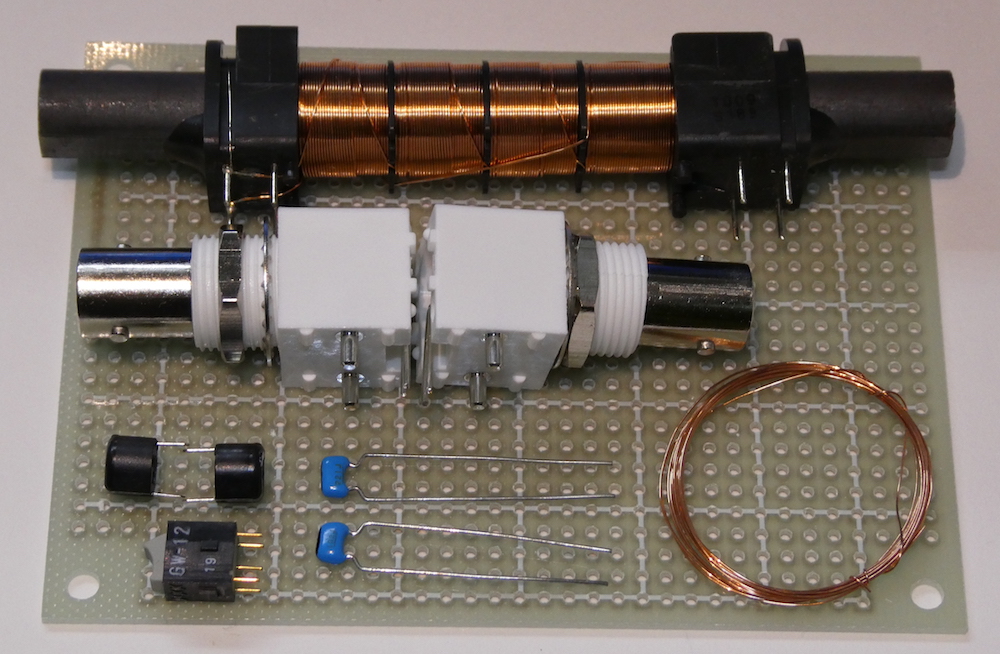 1000PF/220PF/120PFトリマ2個/切換スイッチ/BNCコネクター2個/ユニバーサル基板/