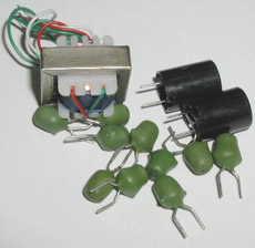 使用するコイル、コンデンサ、抵抗です。