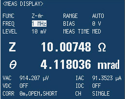 測定周波数は、1KHz/1MHzの固定です。