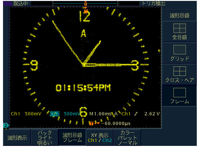 2チャンネル・オシロスコープに時計を表示させてみよう!