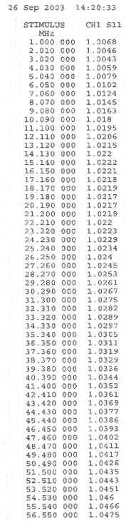 3MHz - 6GHz / 最大1601ポイントでVSWRを測定したデータ付きです。