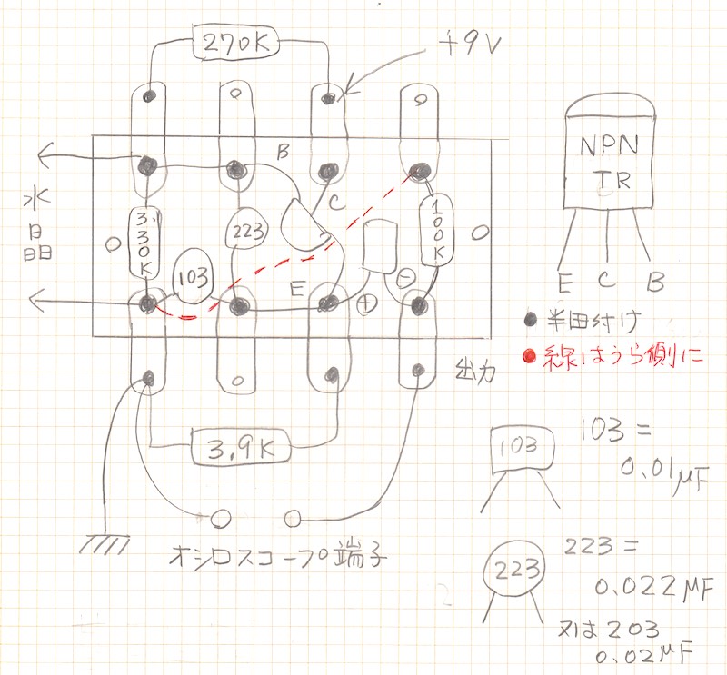 ※オシロスコープ出力端子に接続する100kΩを1本入れてあります。