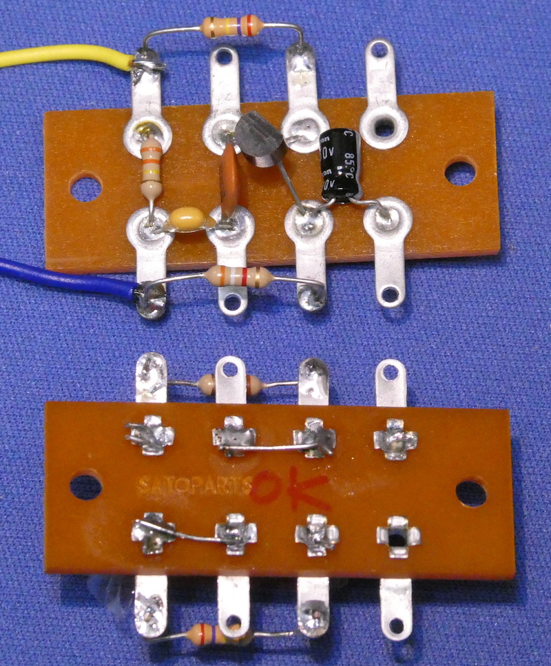 この平ラグ板は製作サンプルなので、出力の100kΩは平ラグ板状ではなく出力端子側に接続しています。