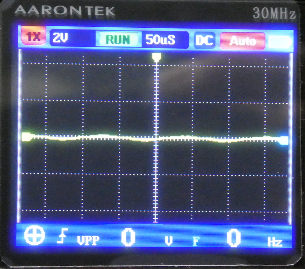 電源投入直後から2秒ほど経過した出力波形 まだ変化は見られない。